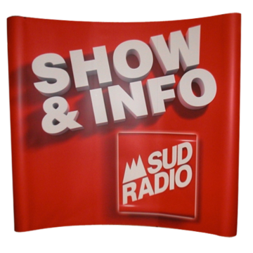 Façonnage : plastification brillante recto, contrecollage sur PVC 2mm, pose d'un chevalet au dos