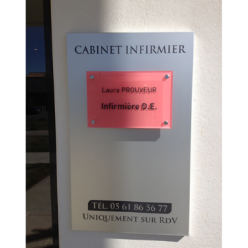 Caisson an aluminium anodisé avec 2 plaques en plexi épaisseur 8 mm montées sur entretoises, vinyle vert clair au dos et texte en vinyle de couleur au recto