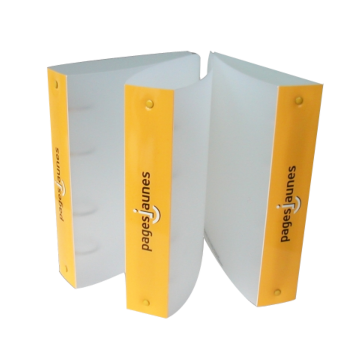 Façonnage : pelliculage mat recto, contrecollage sur carton 20/10ème, pose de mécanisme 4 anneaux