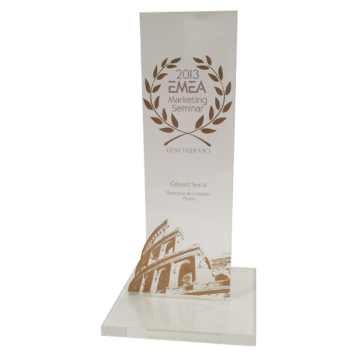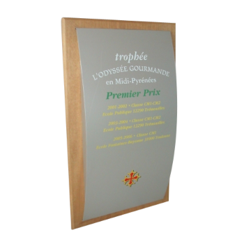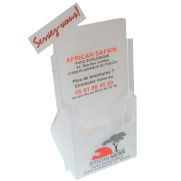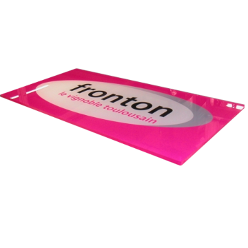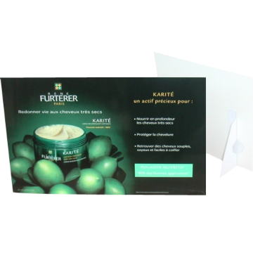 Façonnage : plastification brillante recto, contrecollage sur PVC 2mm, pose d'un chevalet au dos